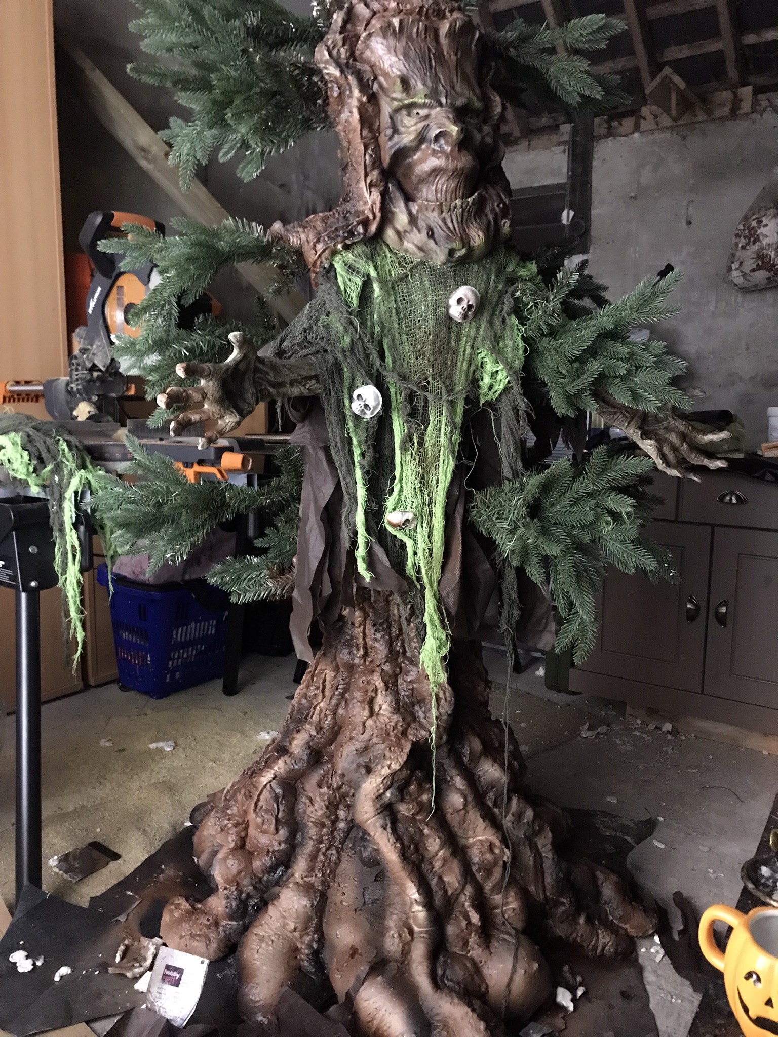 Shown above: Self contained Mini-Pond; Moss Wall and Willow Arch; Coasters; Custom animatronic Halloween Tree