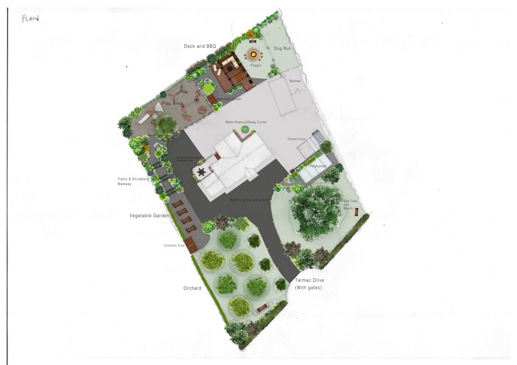 The plan will include material and planting recommendations, as well as a full colour drawing, to scale of the proposal.